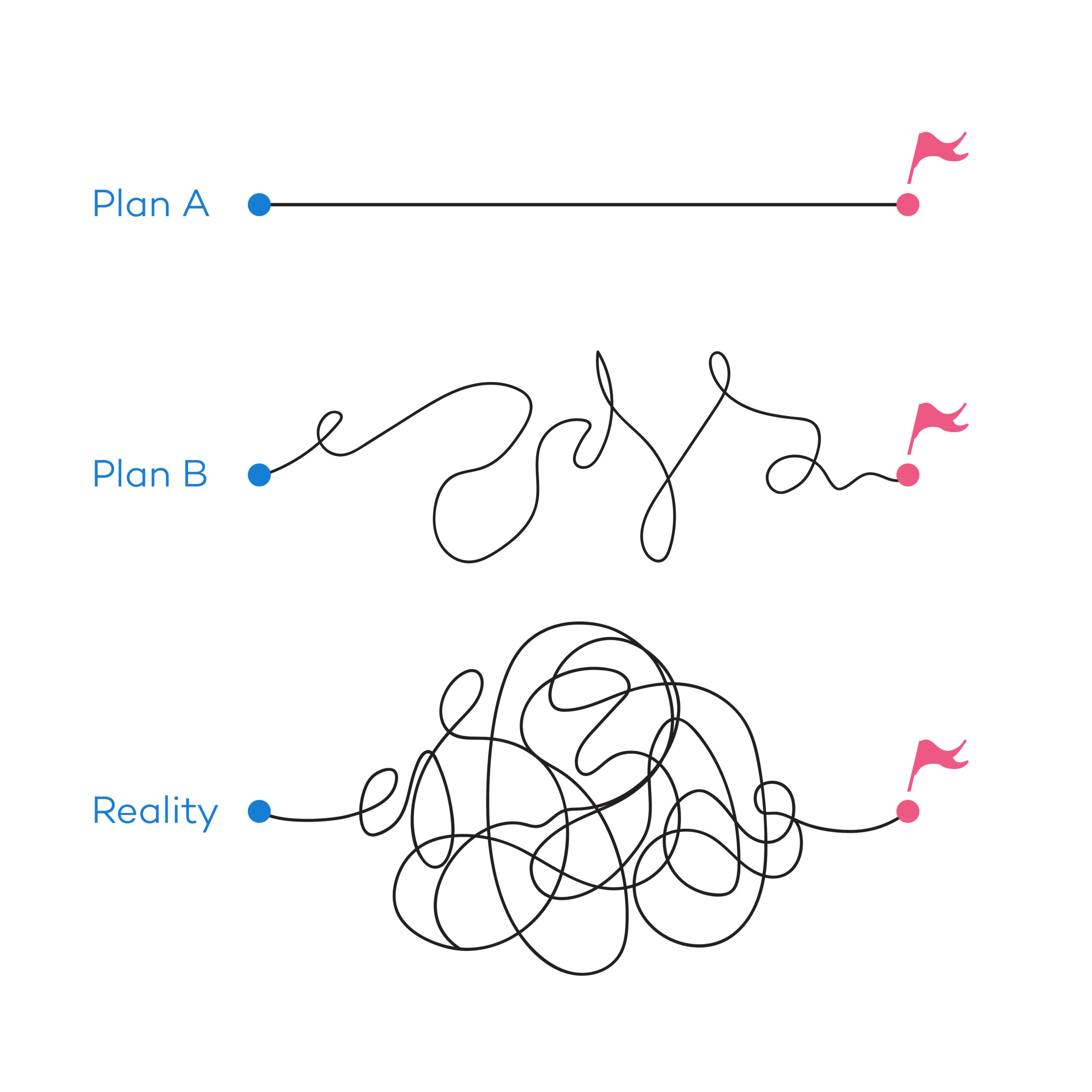 Umirite pričakovanja in sprejmite, da so ovinki na poti, sestavni del življenja. Kot prikazuje spodnja slika.